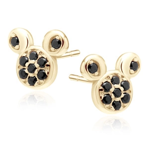 Srebrne pozłacane kolczyki pr. 925 myszka z czarnymi cyrkoniami