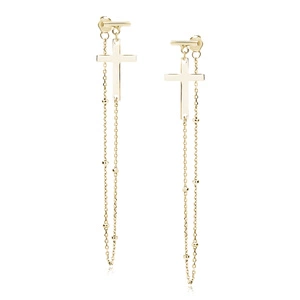 Srebrne pozłacane kolczyki pr.925 z krzyżem i kulkami na łańcuszku