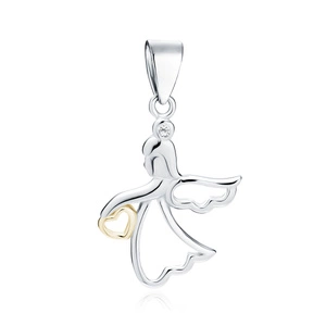 Srebrna zawieszka pr.925 anioł z pozłacanym sercem