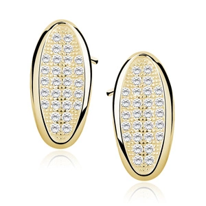 Srebrne kolczyki pr. 925 owalne, Cyrkonia microsetting, pozłacane