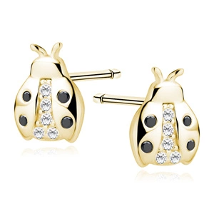 Kolczyki srebrne pozłacane pr. 925 biedronka z cyrkoniami