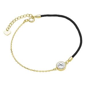 Srebrna pr.925 pozłacana bransoletka z czarnym sznurkiem - cyrkonia