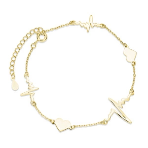 Srebrna (925) pozłacana bransoletka - serca i linie pulsu