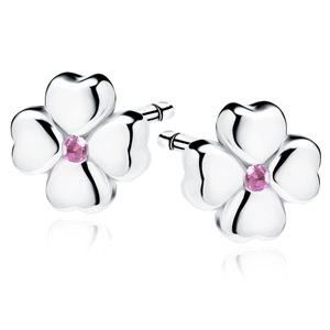 srebrne pozłacane kolczyki pr.925 koniczynki z białą cyrkonią