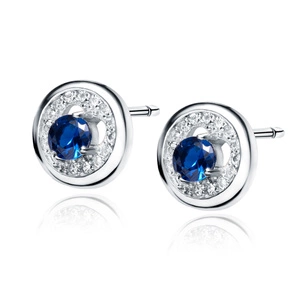 Srebrne pr.925 kolczyki z niebieską cyrkonią i motywem serca