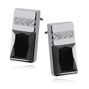 Srebrne kolczyki pr.925 Czarna cyrkonia okrągła średnica 10mm