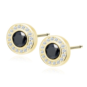 Srebrne pozłacane kolczyki pr.925 Czarna cyrkonia okrągła średnica 10mm