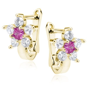 Srebrne kolczyki pr.925 cyrkonia rubinowa, złocony kwiatek