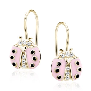 Srebrne pozłacane kolczyki pr.925 różowa biedronka z cyrkoniami - różowe złoto
