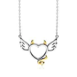 Srebrny naszyjnik pr.925 serce diabełek z cyrkonią - pozłacane rogi i ogon