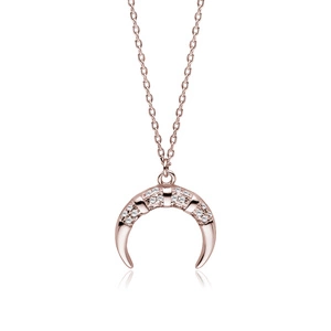 Srebrny pozłacany naszyjnik pr.925 - półksiężyc z cyrkoniami - różowe złoto