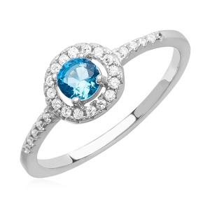 Piękny srebrny pierścionek pr.925 Cyrkonia szafirowa