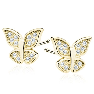 Srebrne pozłacane kolczyki pr. 925 motylki z białymi cyrkoniami