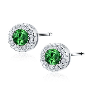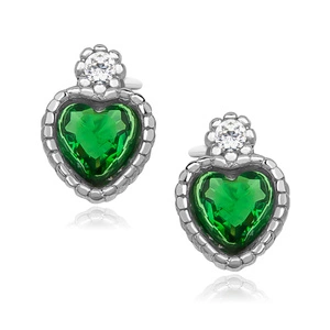 Srebrne pr.925 kolczyki serduszka z szmaragdową cyrkonią