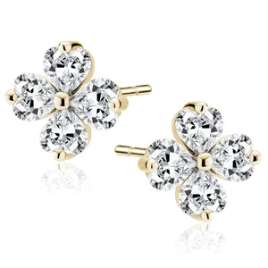 srebrne pozłacane kolczyki pr.925 koniczynki z białą cyrkonią