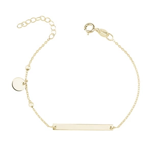 Pozłacana bransoletka z blaszką i kółeczkiem pr.925 z regulacją