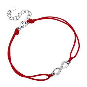Srebrna pr.925 bransoletka z czerwonym sznurkiem - nieskończoność z cyrkoniami