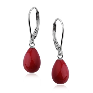 Srebrne kolczyki pr.925 łezki, prasowana muszla - czerwona