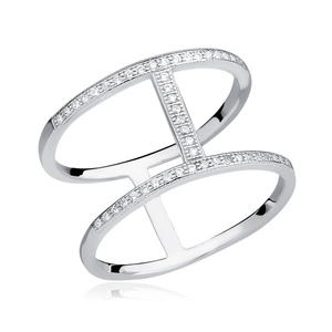 Srebrny, duży pierścionek podwójny pr.925 cyrkonia biała