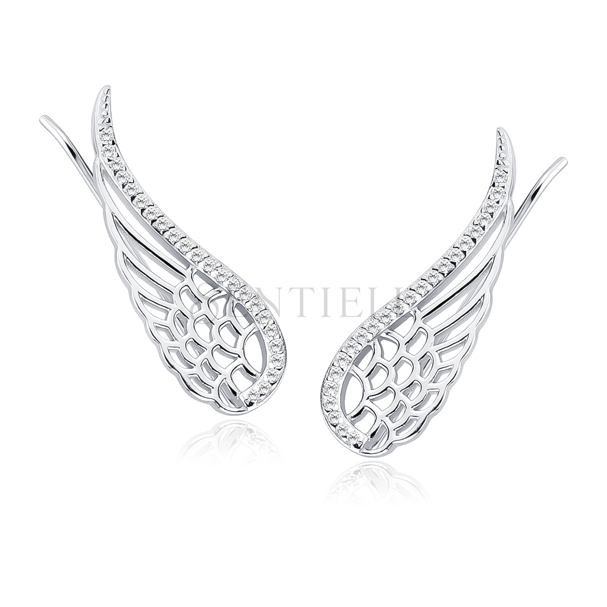 Srebrne kolczyki pr. 925 nausznice skrzydła z cyrkoniami