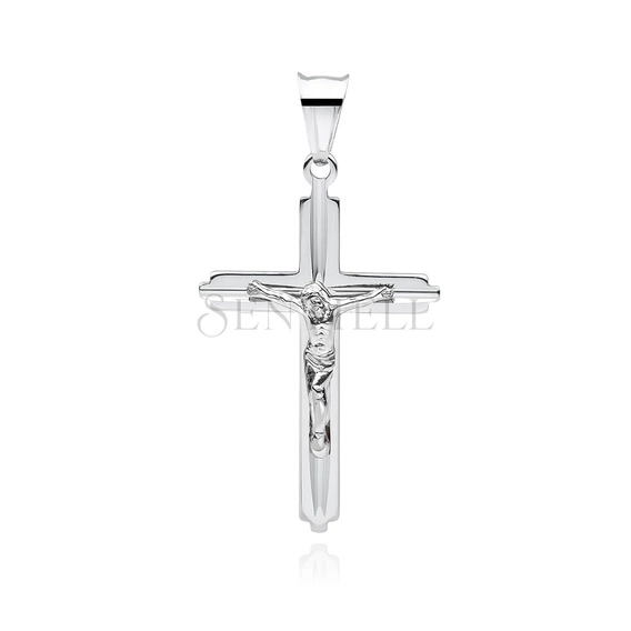 Srebrny pr. 925 krzyżyk rodowany diamentowany z reliefowym wizerunkiem 40 x 21 mm