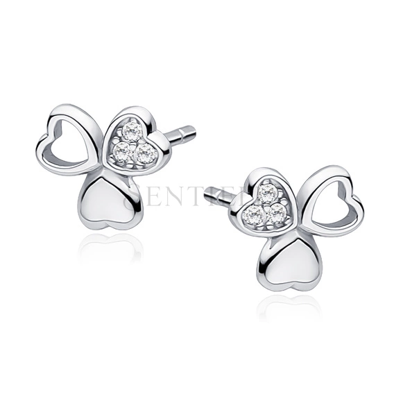 Srebrne pr.925 kolczyki z białymi cyrkoniami - koniczyny
