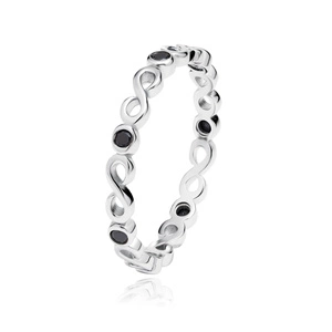Srebrny delikatny pierścionek pr.925 z czarnymi cyrkoniami - Nieskończoność