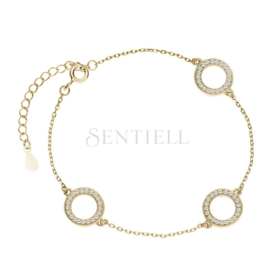 Srebrna pozłacana bransoletka celebrytek pr. 925 - kółka z białymi cyrkoniami