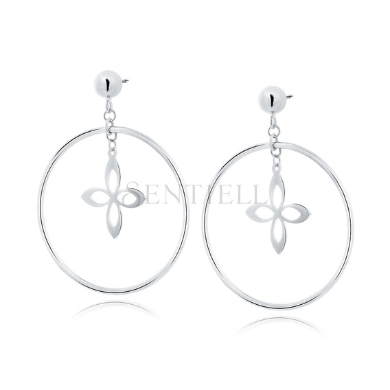 Srebrne (925) kolczyki - koła z kwiatkiem