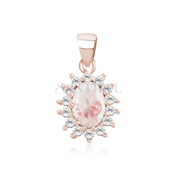 Srebrna pozłacana zawieszka pr. 925 - białe cyrkonie oraz cyrkonia w kolorze morganitu - różowe złoto