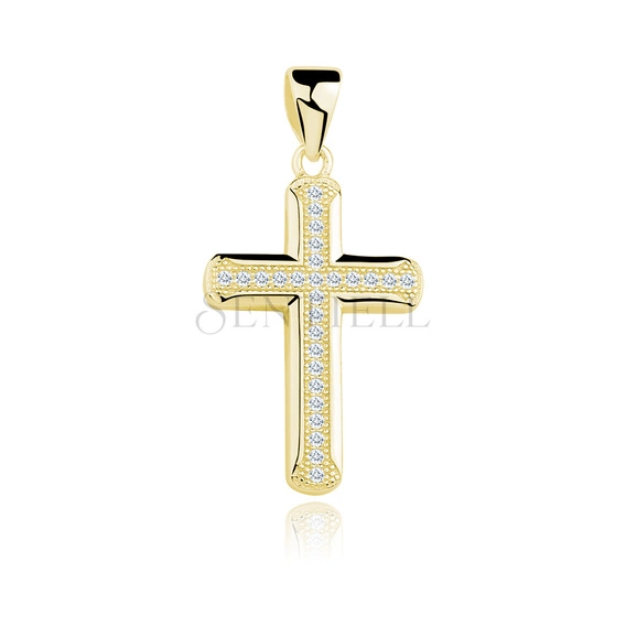 Srebrny pr. 925 pozłacany krzyżyk z cyrkoniami 28 x 14 mm
