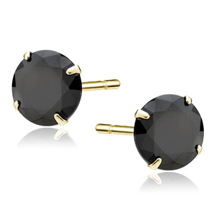 Srebrne pozłacane kolczyki pr.925 Czarna cyrkonia okrągła średnica 8mm