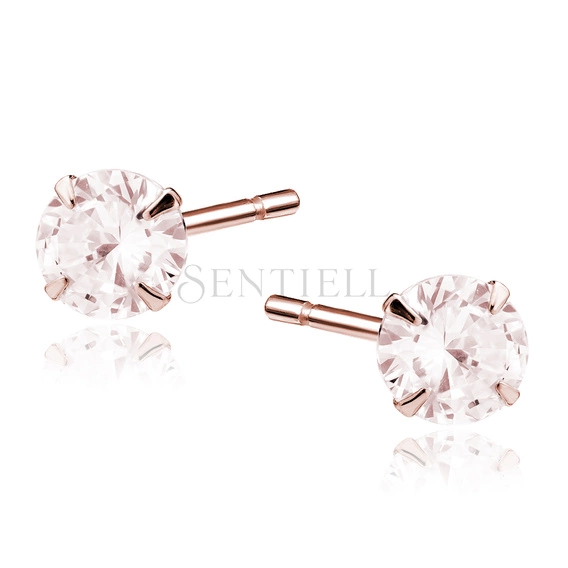 Srebrne pozłacane kolczyki pr.925 Cyrkonia okrągła średnica 6mm - różowe złoto
