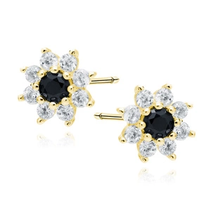 Srebrne pozłacane kolczyki pr.925 kwiatek z czarną cyrkonią