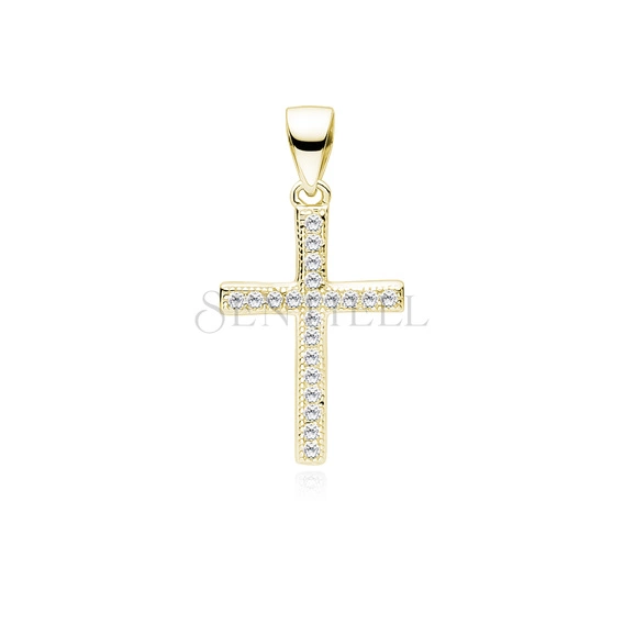 Srebrny pr. 925 pozłacany krzyżyk z cyrkoniami 25 x 13 mm