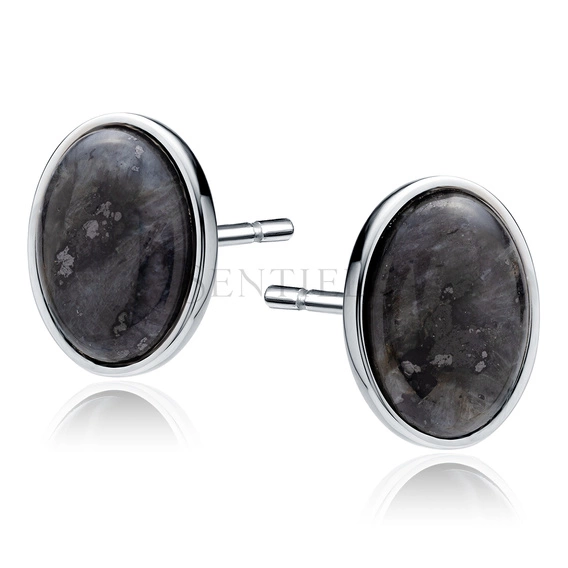 Srebrne kolczyki pr.925 z czarnym larvikitem