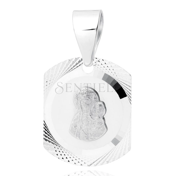 Srebrny pr. 925 diamentowany medalik Matka Boska Częstochowska 12 x 20 mm