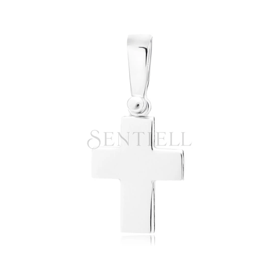 Zawieszka w formie krzyżyka wykonana ze srebra pr. 925, bez dodatkowej powłoki. Model o wymiarach 25 mm na 11 mm ma pełny, płaski korpus z prostokątnym profilem ramion i gładką powierzchnią wykończoną w wysokim połysku. Ramiona są równe i symetryczne, zakończone prostymi krawędziami. Górna część krzyżyka połączona jest z zamkniętą, polerowaną krawatką poprzez kulisty łącznik, co zapewnia swobodne ułożenie zawieszki na łańcuszku. Konstrukcja zgodna ze standardami jubilerskimi.