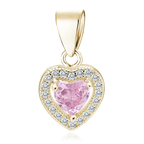 Srebrna pozłacana zawieszka pr.925 serce z jasnoróżową cyrkonią