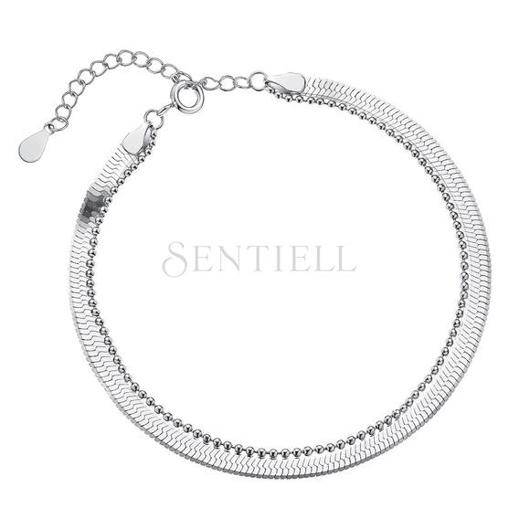 Srebrna bransoletka pr.925 z taśmą Snake i łańcuszkiem Bead