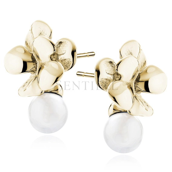 Srebrne pozłacane kolczyki pr. 925 z kwiatkiem i perłą