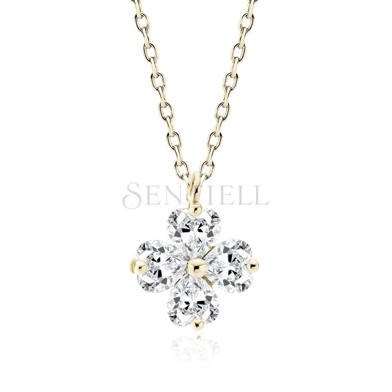 - Srebrny pozłacany naszyjnik pr. 925 koniczyna z białymi cyrkoniami