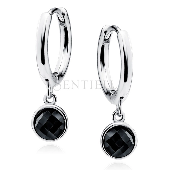 Srebrne kolczyki pr.925 kółka z czarnymi cyrkoniami