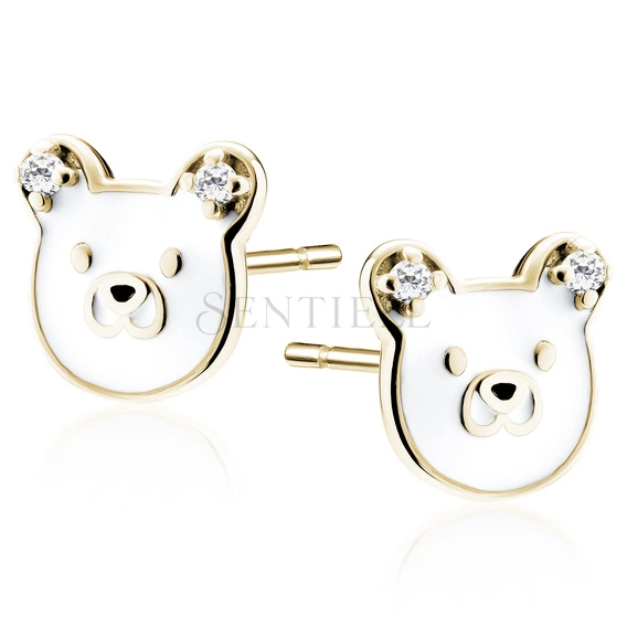 Srebrne pozłacane kolczyki pr.925 emaliowane - misie z białymi cyrkoniami