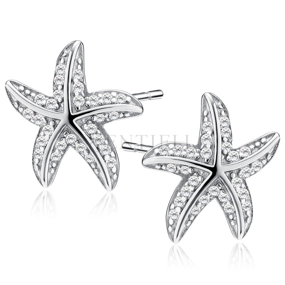 - Srebrne kolczyki pr. 925 rozgwiazdy z białymi cyrkoniami