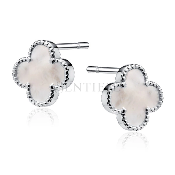 Srebrne kolczyki pr.925 z masą perłową - czterolistna koniczynka