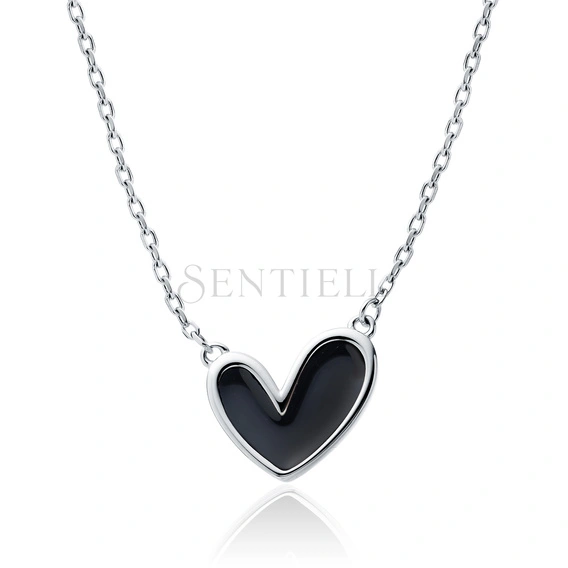 - Srebrny naszyjnik pr. 925 - serce z czarną emalią
