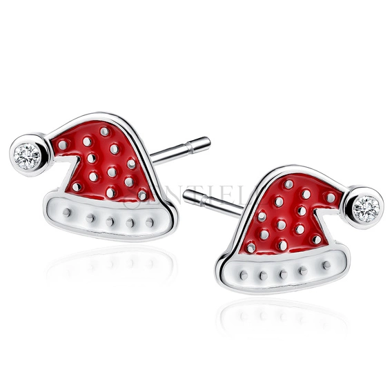 - Srebrne kolczyki pr. 925 czapka Mikołaja z białą cyrkonią