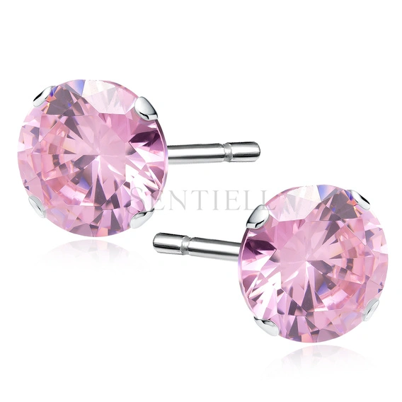 Srebrne kolczyki pr.925 różowa cyrkonia okrągła średnica 8mm