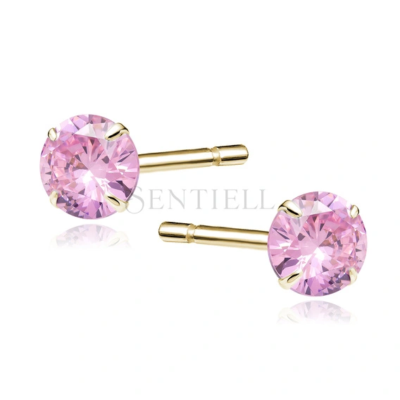 Srebrne pozłacane kolczyki pr.925 różowa cyrkonia okrągła średnica 5mm